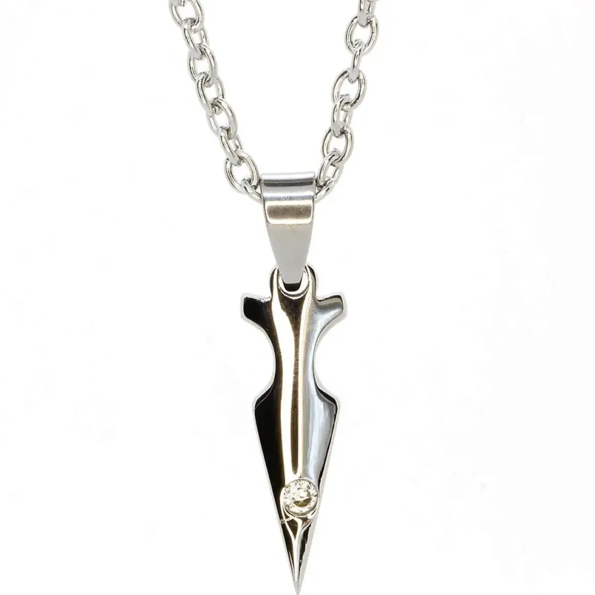 Lille flot halssmykke i høj polleret ædenstål med CZ sten.