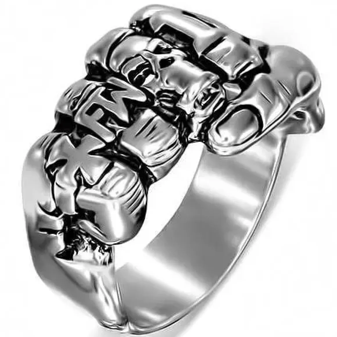 Maskulin med superflot mønster i “Arka-skull design” Bredden på ringen er: 2 x 1,4 cm.
