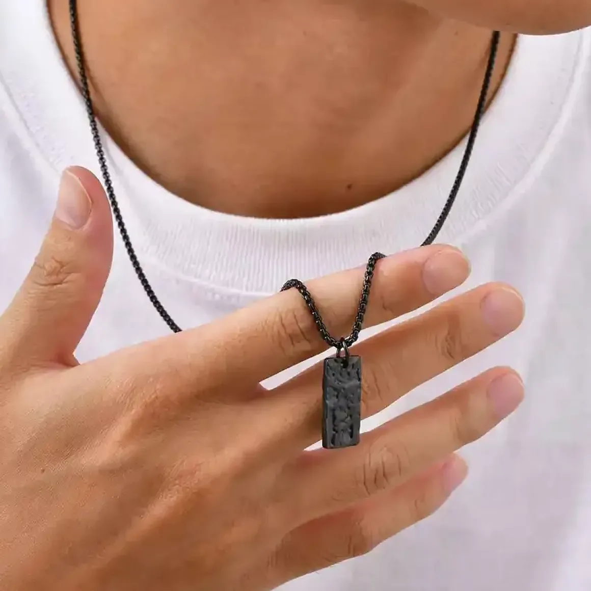 Den medfølgende kæde på 60 cm giver et råt og maskulint udtryk, der passer perfekt til både casual og stilrent look.