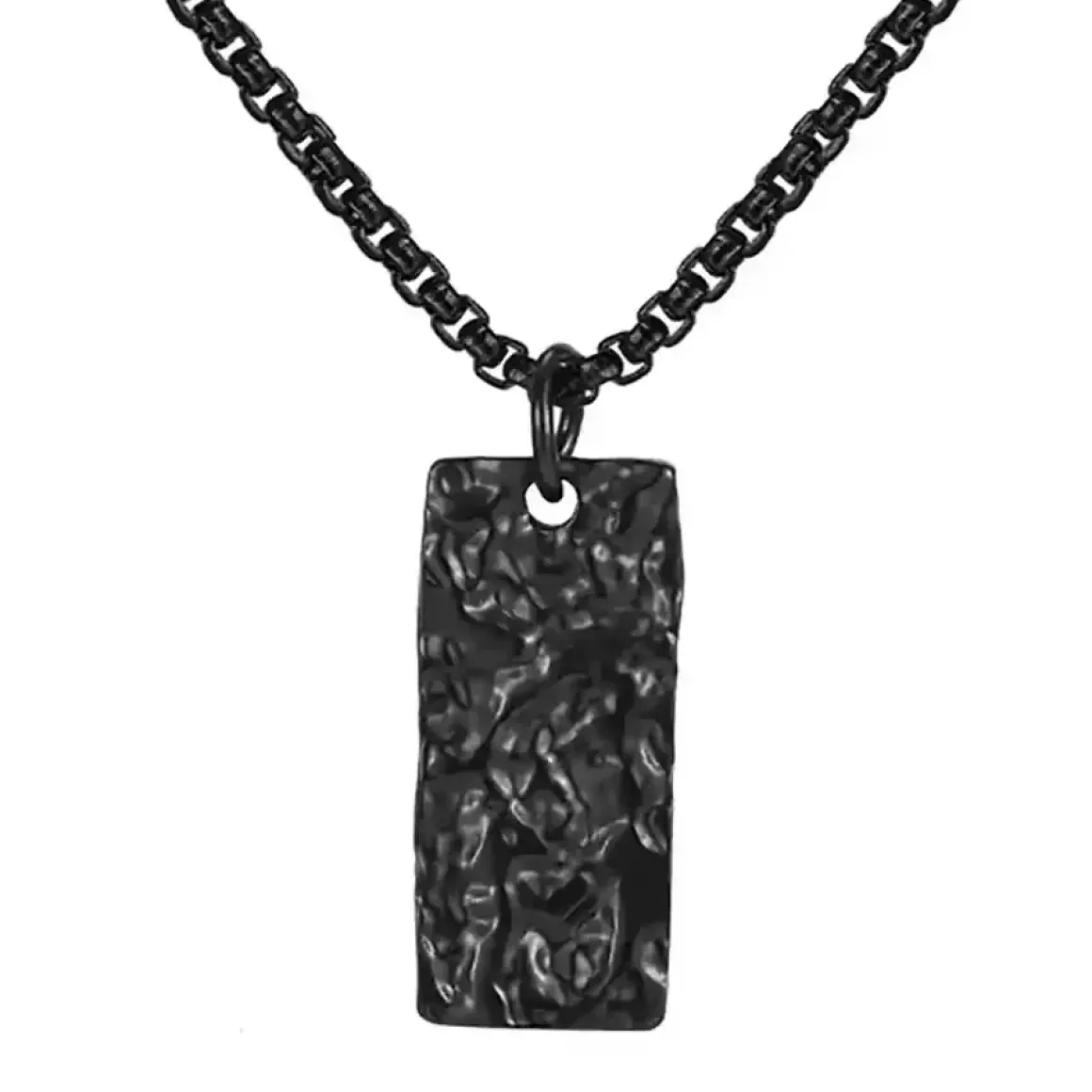Black Forge er et kraftfuldt og moderne halssmykke i sort rustfrit stål med en markant hamret overflade.