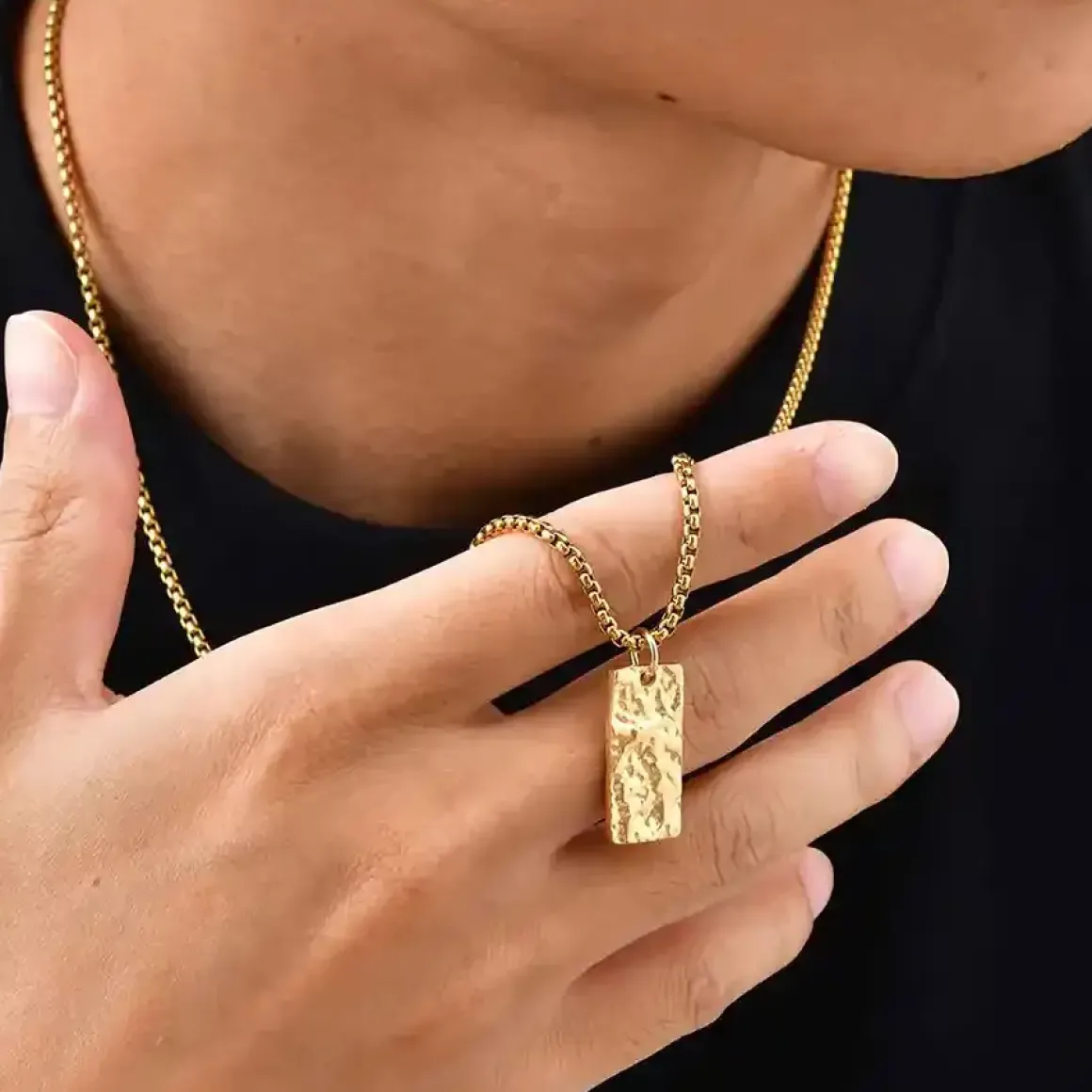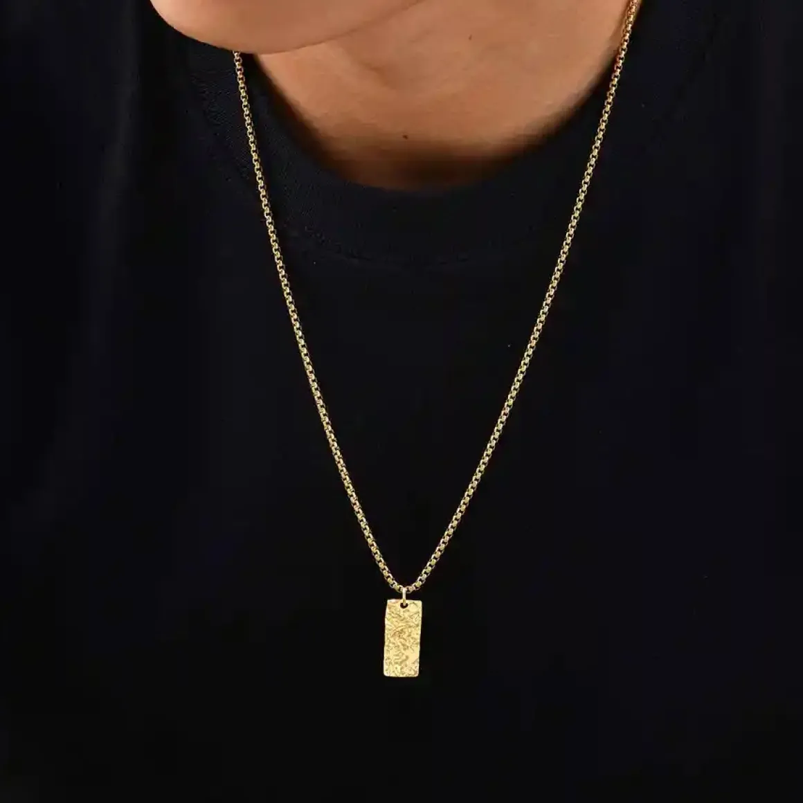 “Auric Forge” er et maskulint halssmykke til mænd, skabt i forgyldt rustfrit stål med en elegant 60 cm kæde.