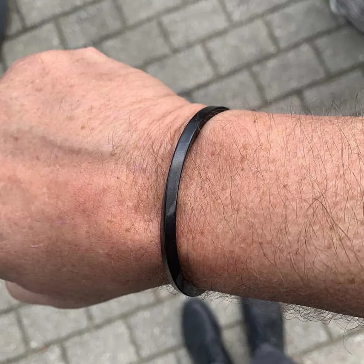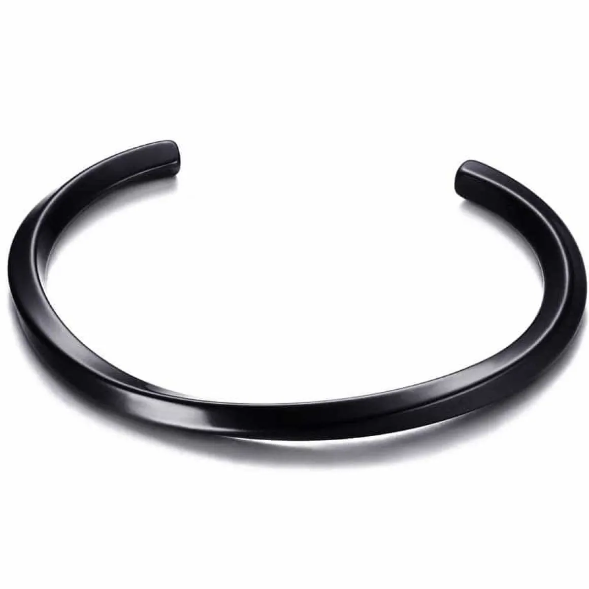 Rustfri Blackcoatet stål vredet bangle i flot stil.