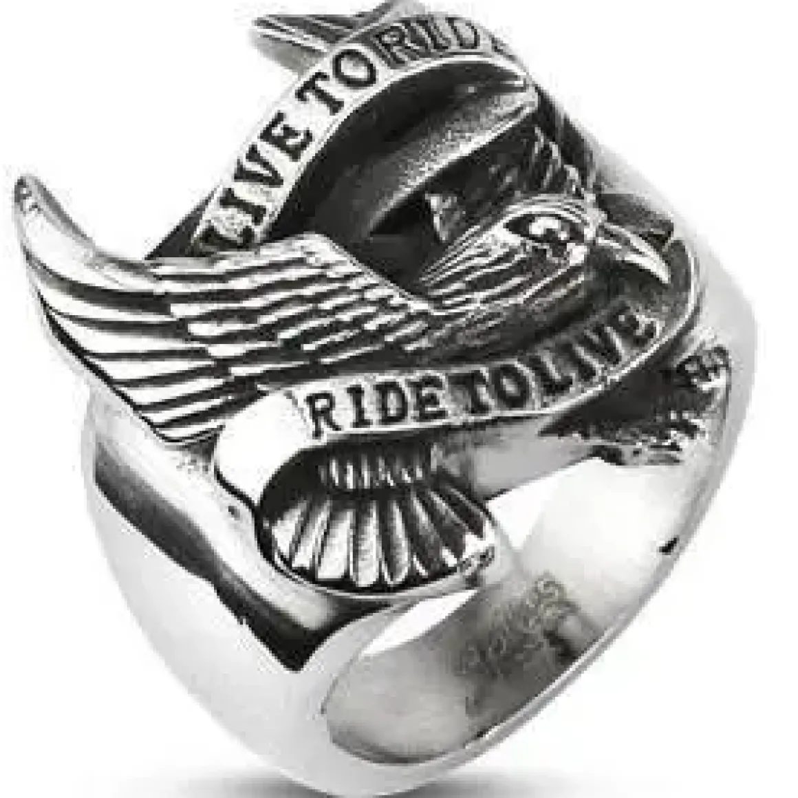 Denne seje biker ring i rustfrit stål med et unikt ørne-design er perfekt til bikeren, der elsker friheden ved at køre.