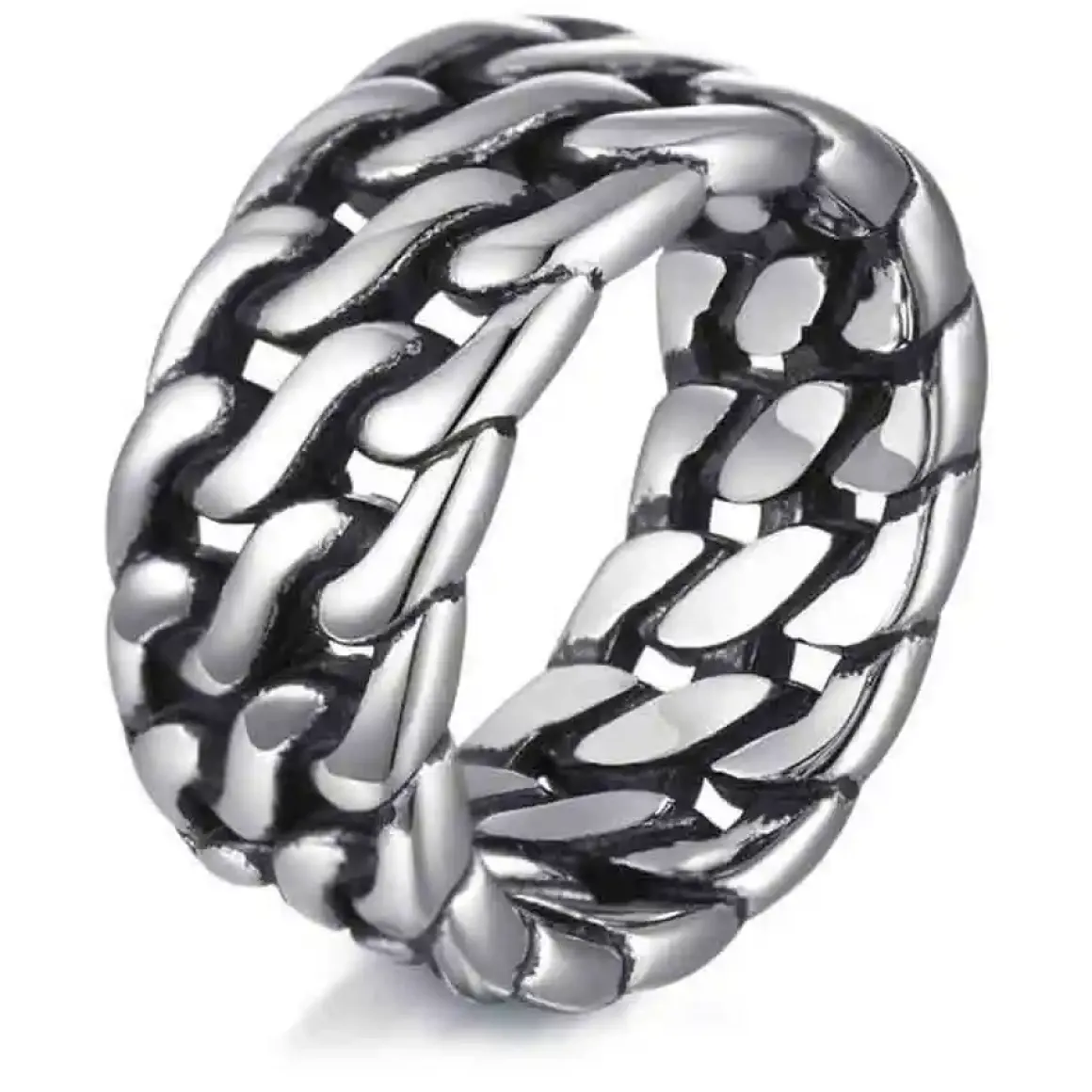 Denne flotte maskuline herrering er i rustfrit stål, hvilket giver den en blank og elegant finish.
