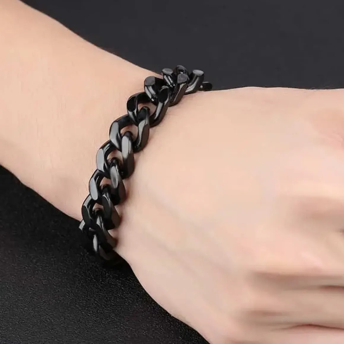 Smart højpolleret rustfri stålarmbånd med faseterede lænker.
