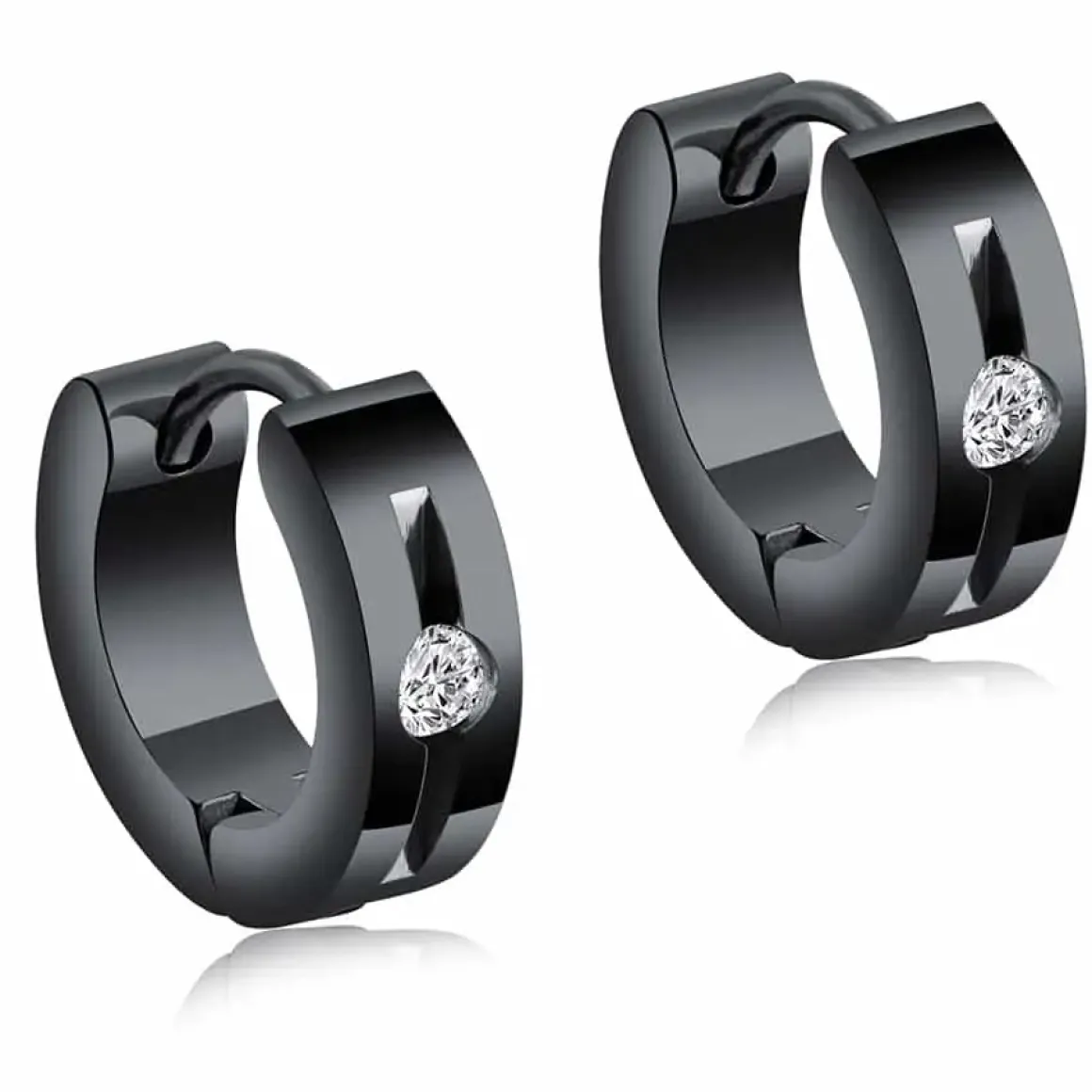 Blackcoatet rustfrit stål med 1 glitrende CZ-sten.