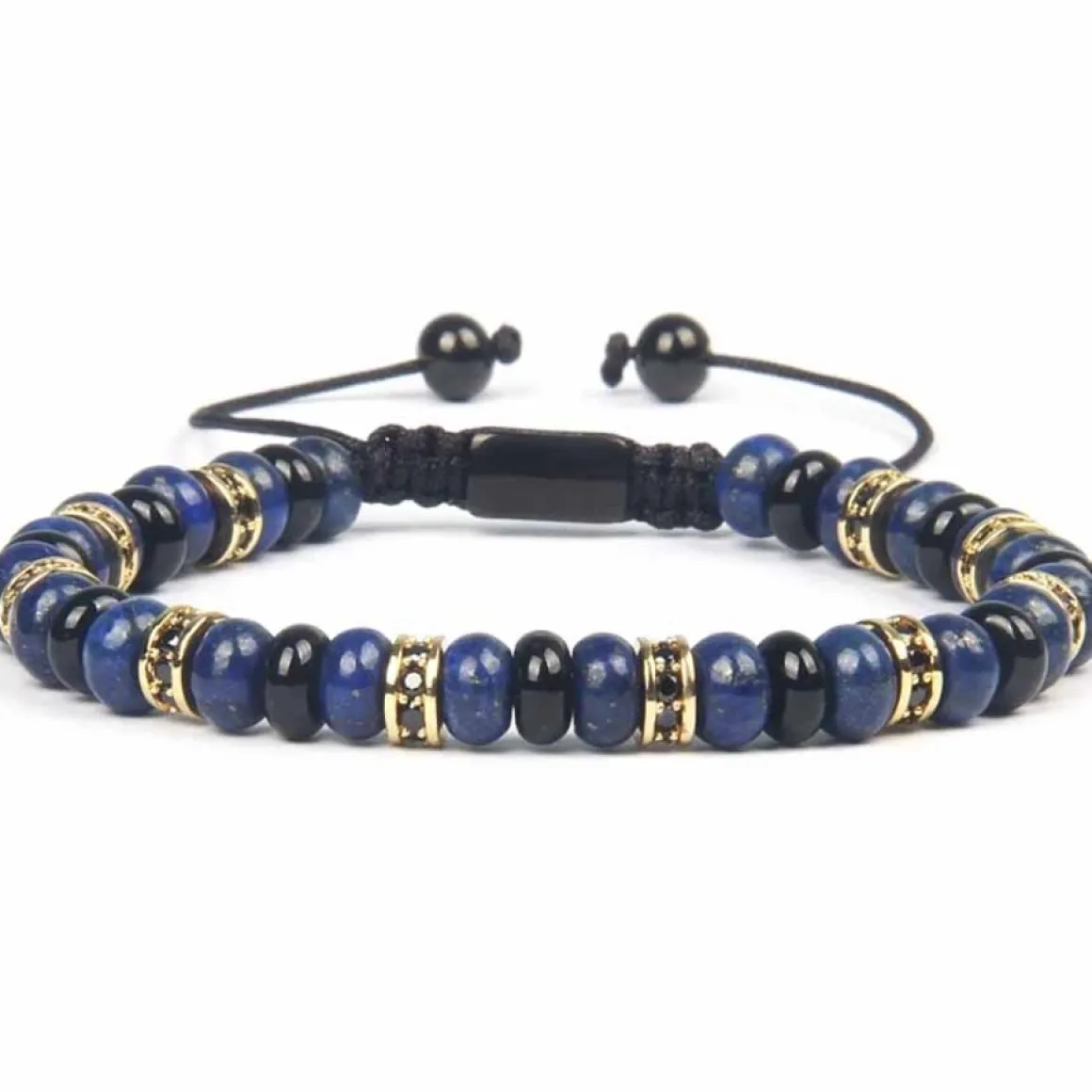 6mm perler i Lapis og sort onyx – mellembeads i rustfri stål med CZ