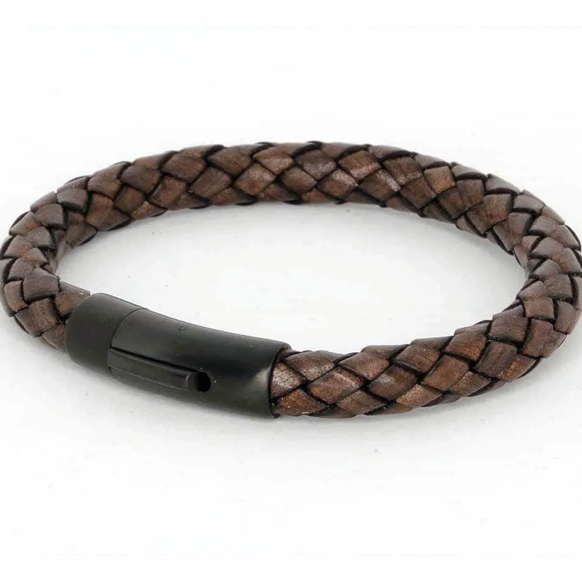 Brun bololæder 8mm med sort rustfri stål sikkerheds lås.