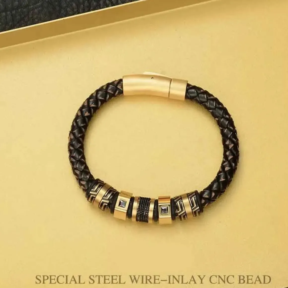 Dette fantastiske armbånd er udført i rustfrit stål, IP forgyldt med sikkerheds lås. – Den 8mm bololæder detaljer i en elegant brun farve tilføjer en ekstra touch af luksus.