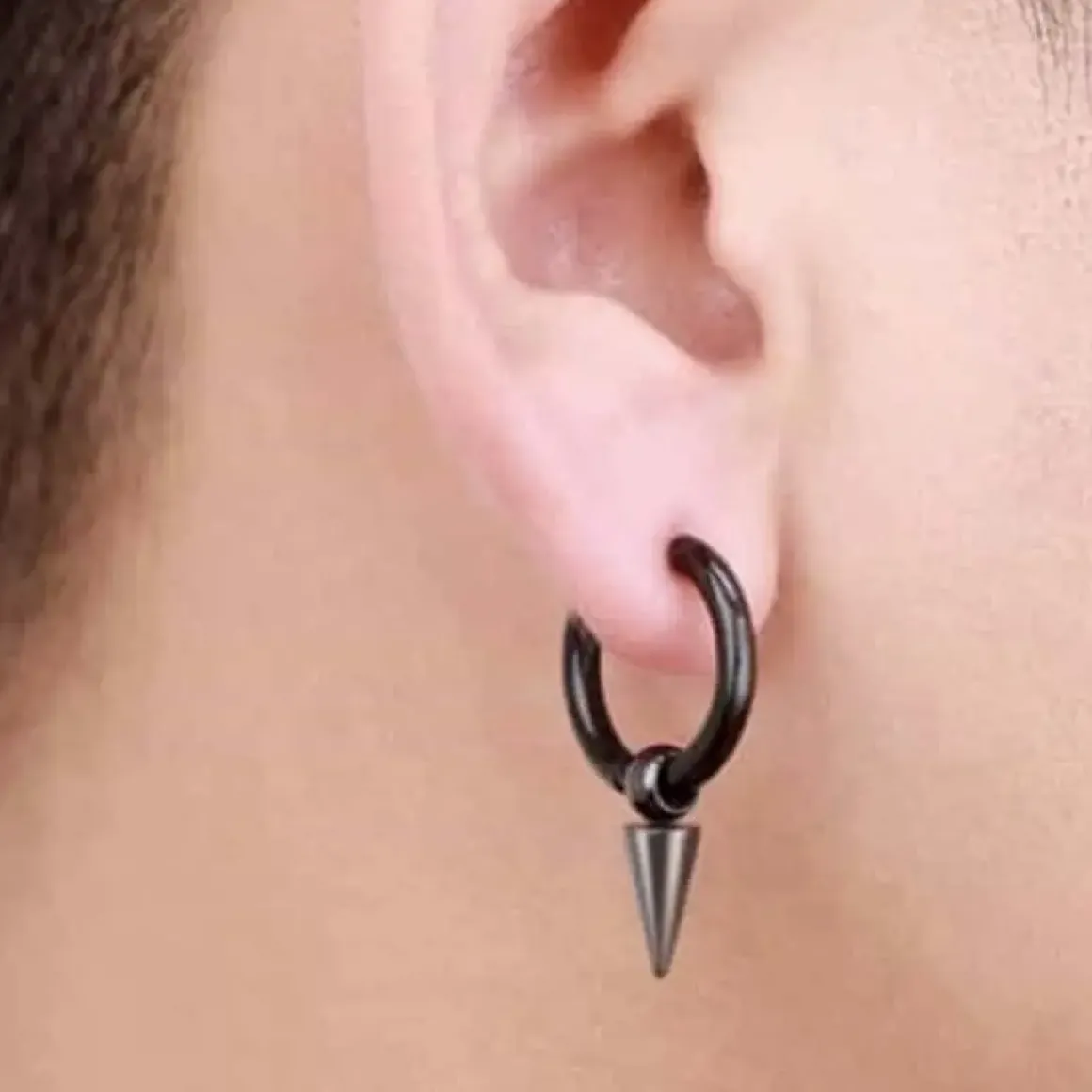 Ørering i sort blackcoat ædelstål polleret med syl vedhæng.
