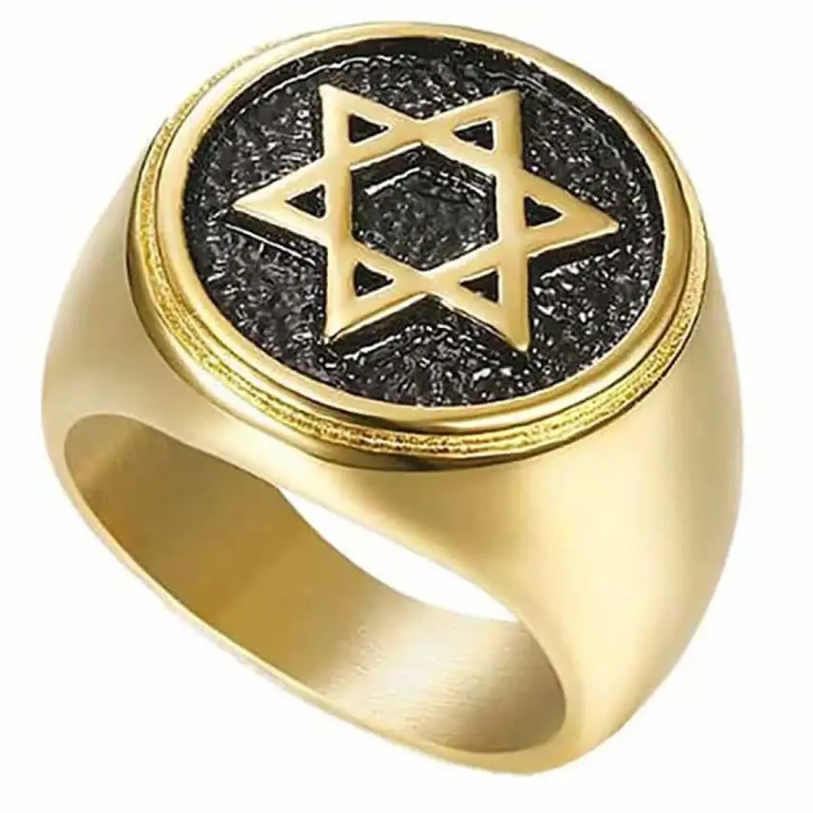 Herrering med David stjerne i forgyldt ædelstål.