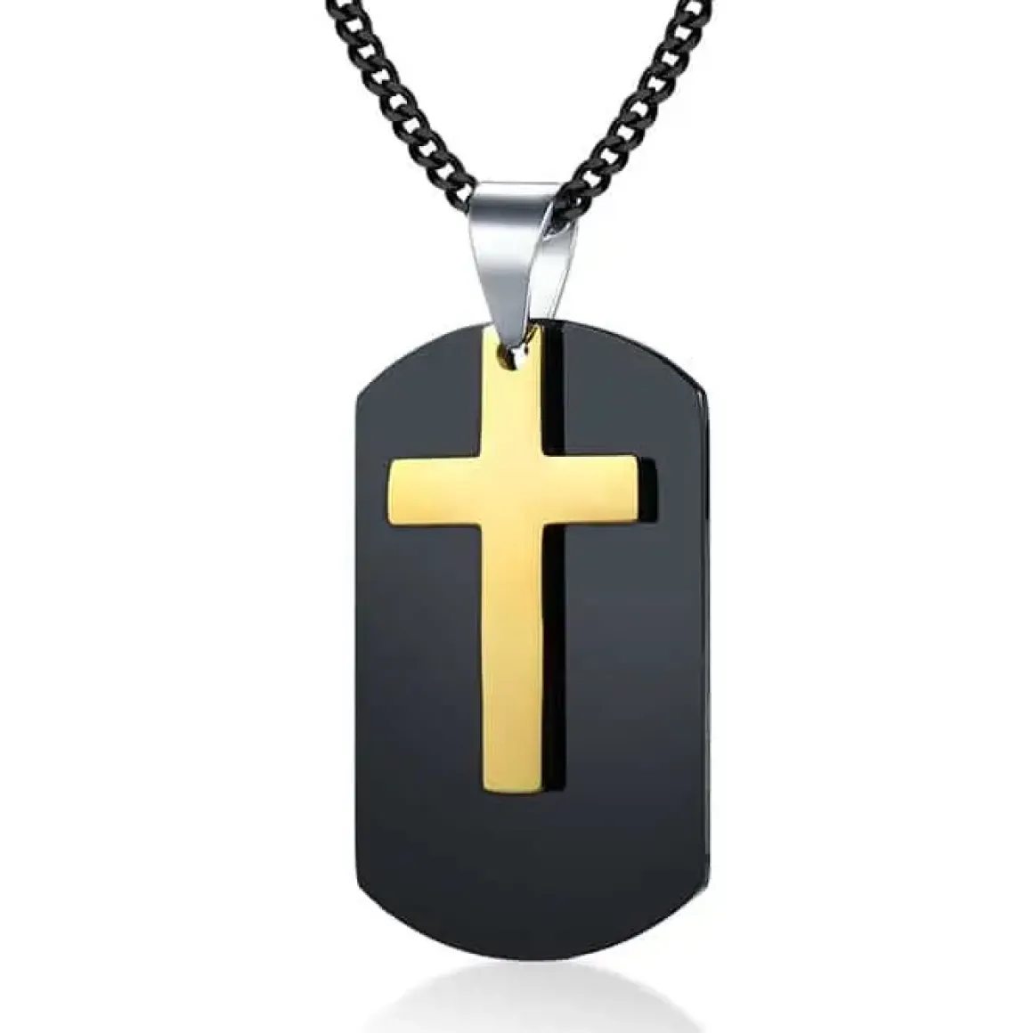 Flot halssmykke til ham i rustfri stål med forgyldt kors.
