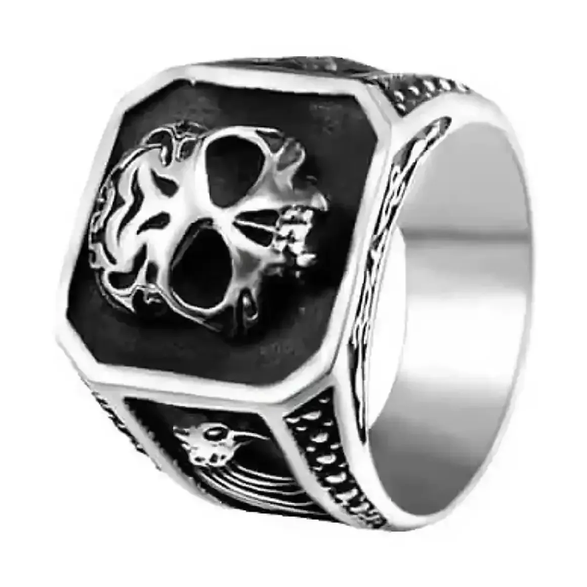 Rustfri stålring med skull hoved.