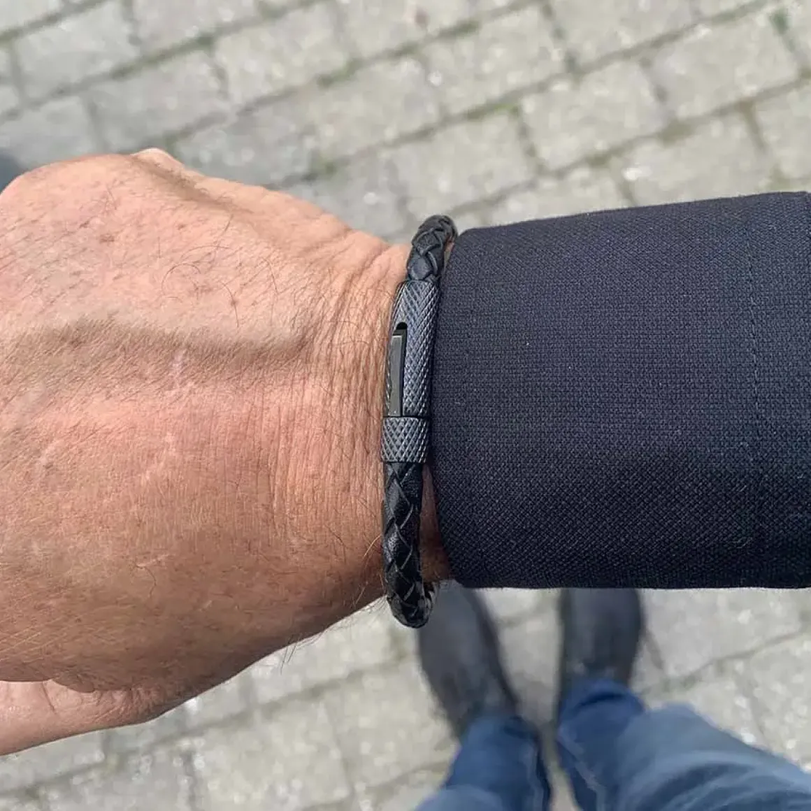 Lækker klassisk herrearmbånd i sort læder til mænd.