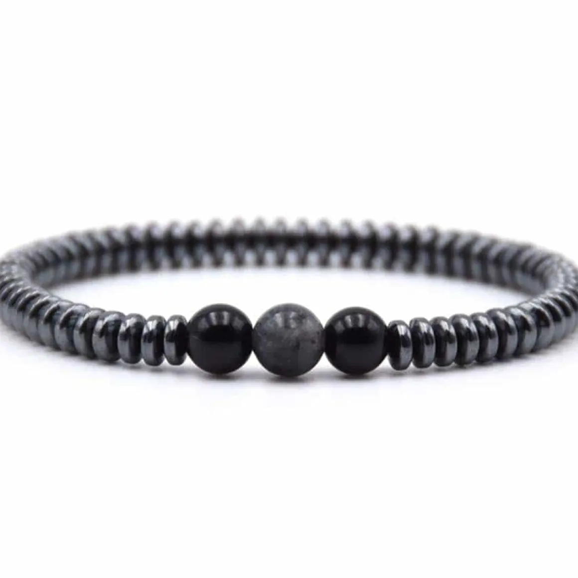 Perlearmbånd med 7mm hamatitperler og 3 stk. 8mm laborit
