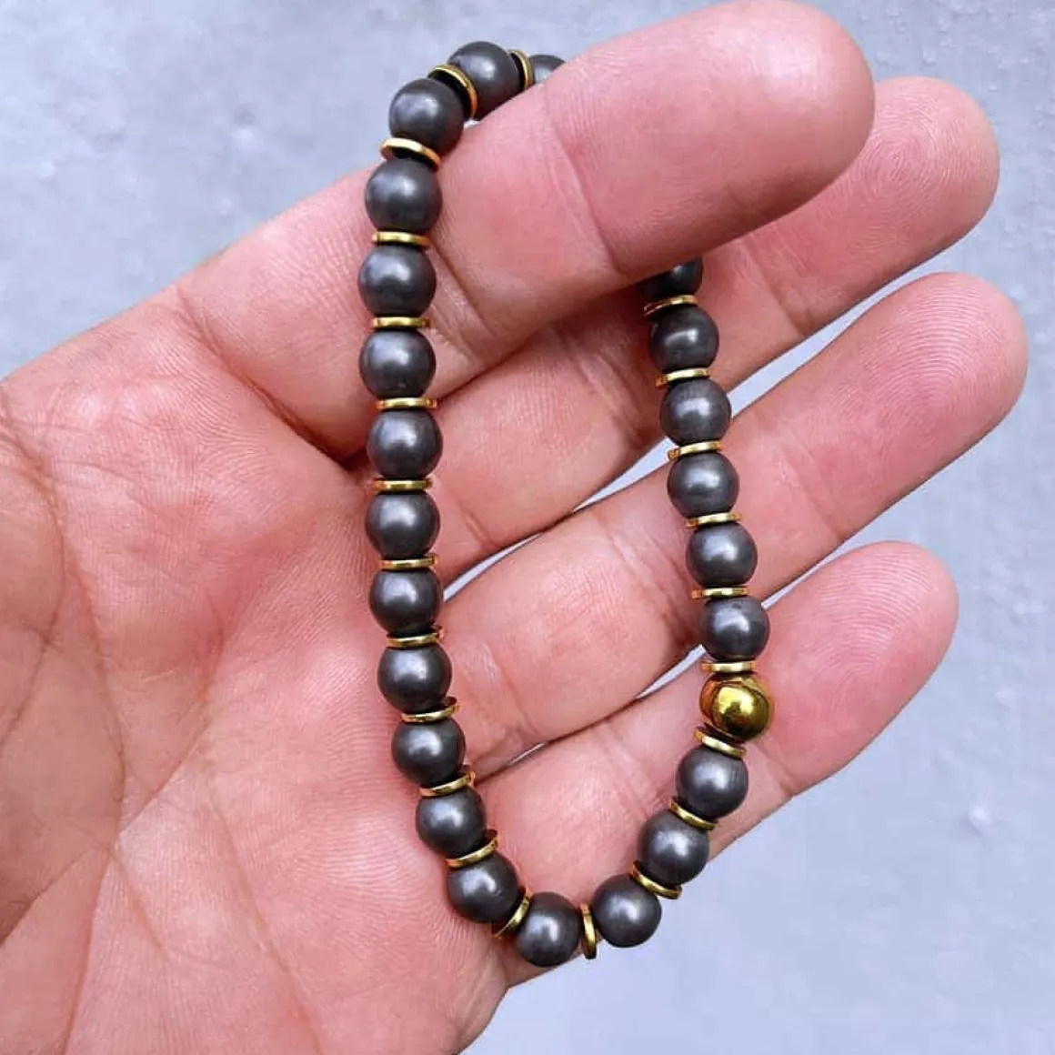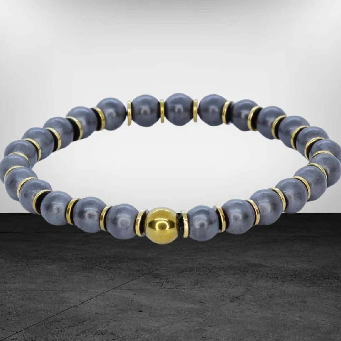 Med håndplukkede greyscale perler og forgylte hamatit beads og perle, vil dette armbånd skille sig ud fra mængden.
