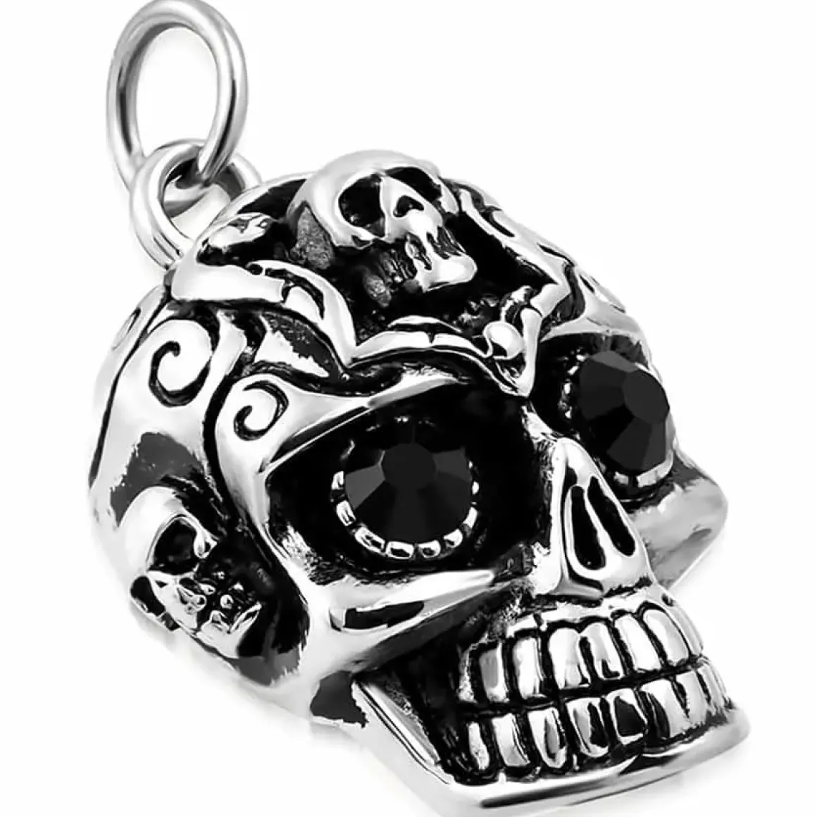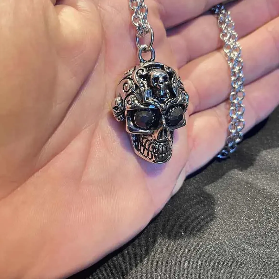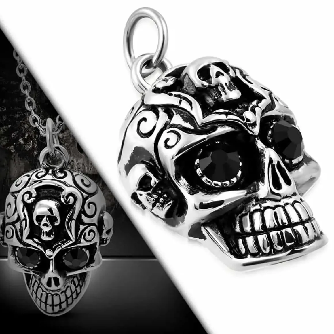 Flot skull halssmykke i rustfri stål.