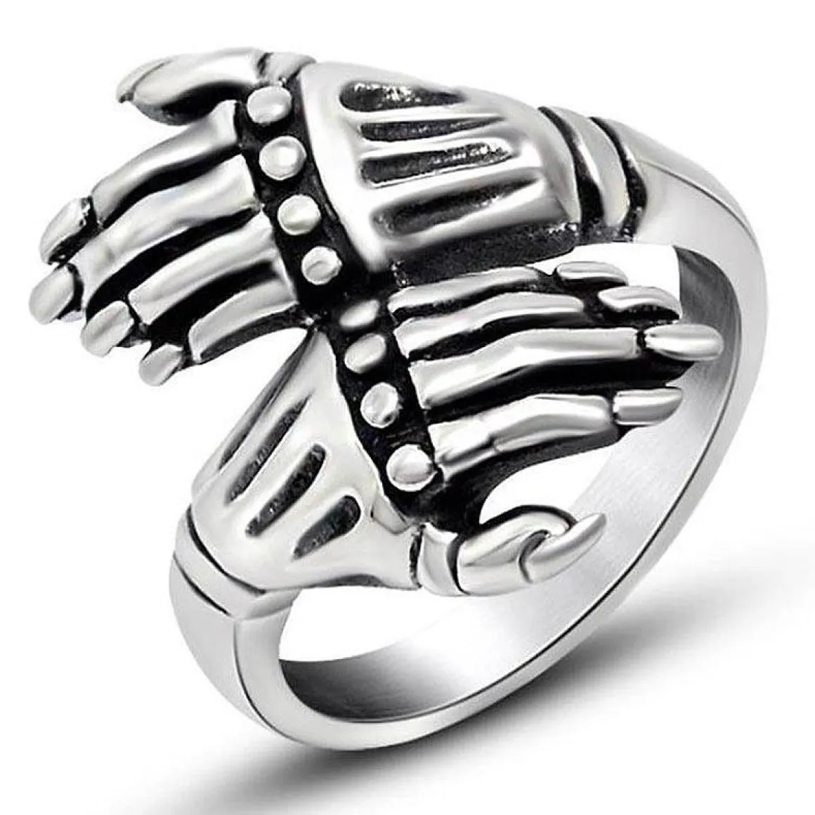 Hands herring er en frisk og moderne herrering lavet af rustfrit stål. Den har et unikt design med hænder, der omfavner fingeren.