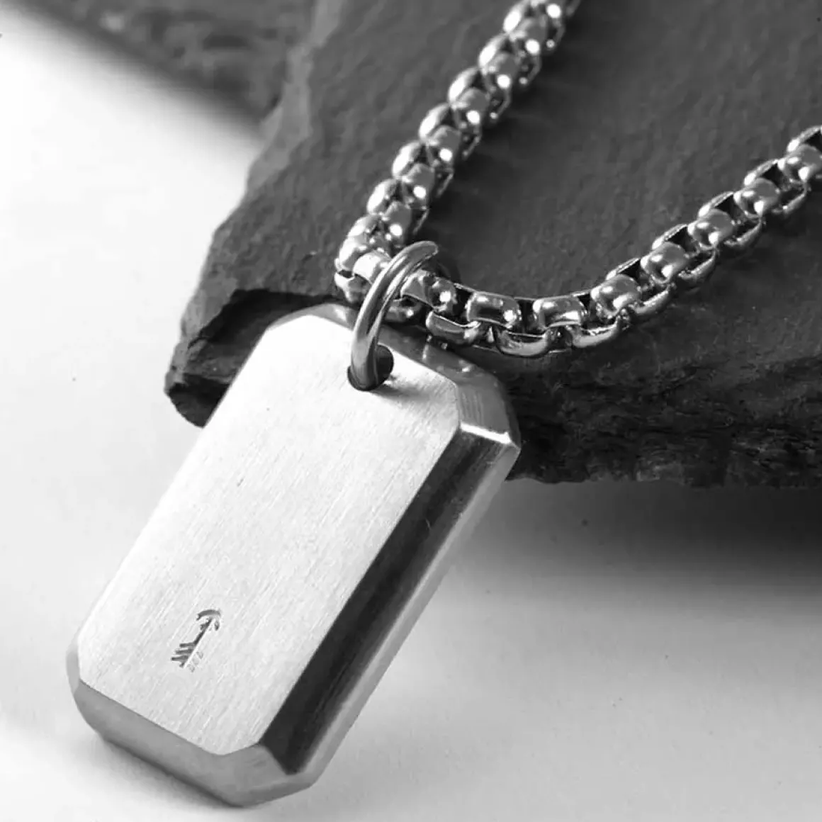 Massivt ædelstål halssmykke og matteret så det giver et flot stilfuldt look.