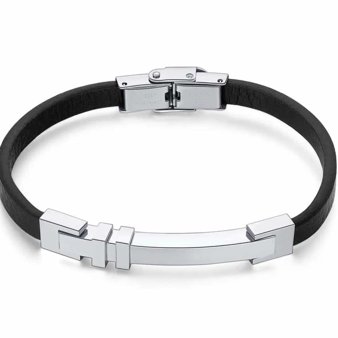 Simpelt herre armbånd i læder og rustfri stål.