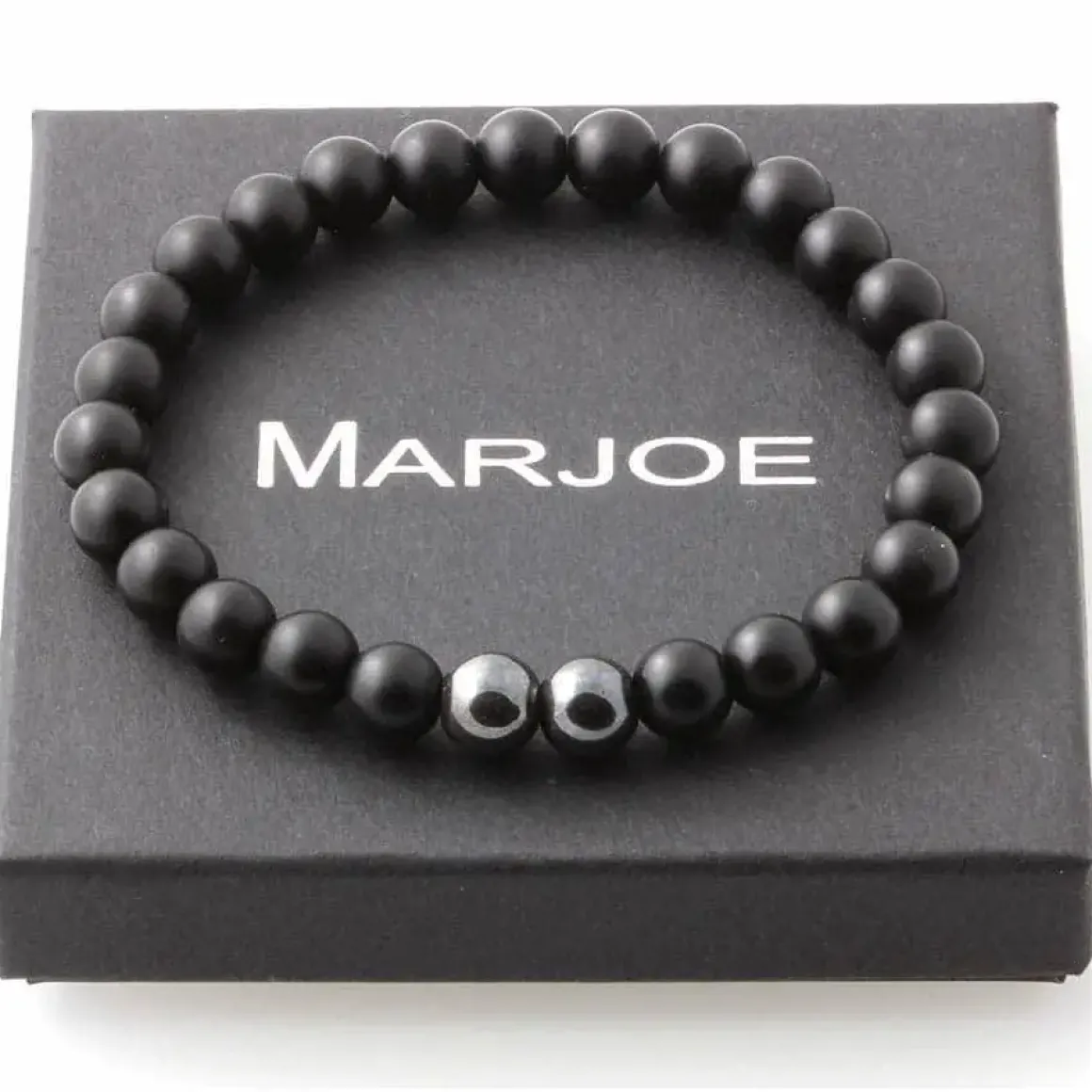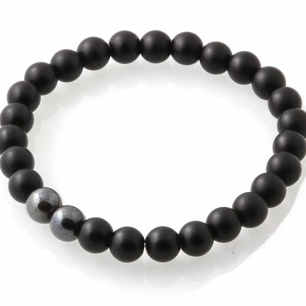 Perlearmbånd med matte sorte perler og 2 hamatit perler.