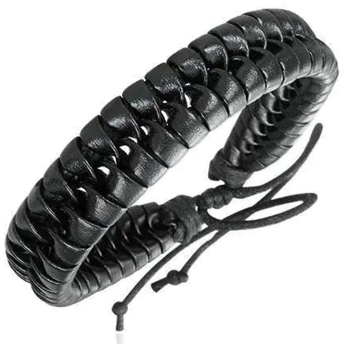 Sort imt. læderarmbånd i bredden 1.5 cm.