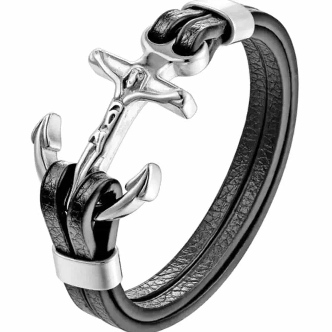Anker med jesus og i rustfrit stål og imt. læder