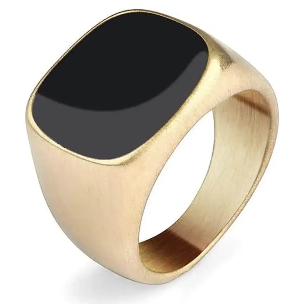 Ringen der giver det mandige look og i forgyldt matteret ædelstål med sort polleret agat.
