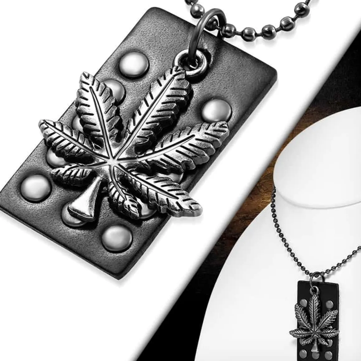 Læderlap på 3 x 5 cm og med kuglekæde på 60 cm.
