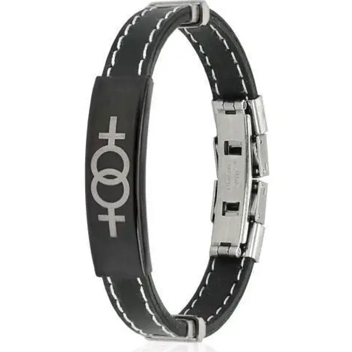 Læderarmbånd med huntegn, i sort PUlæder og stål.
