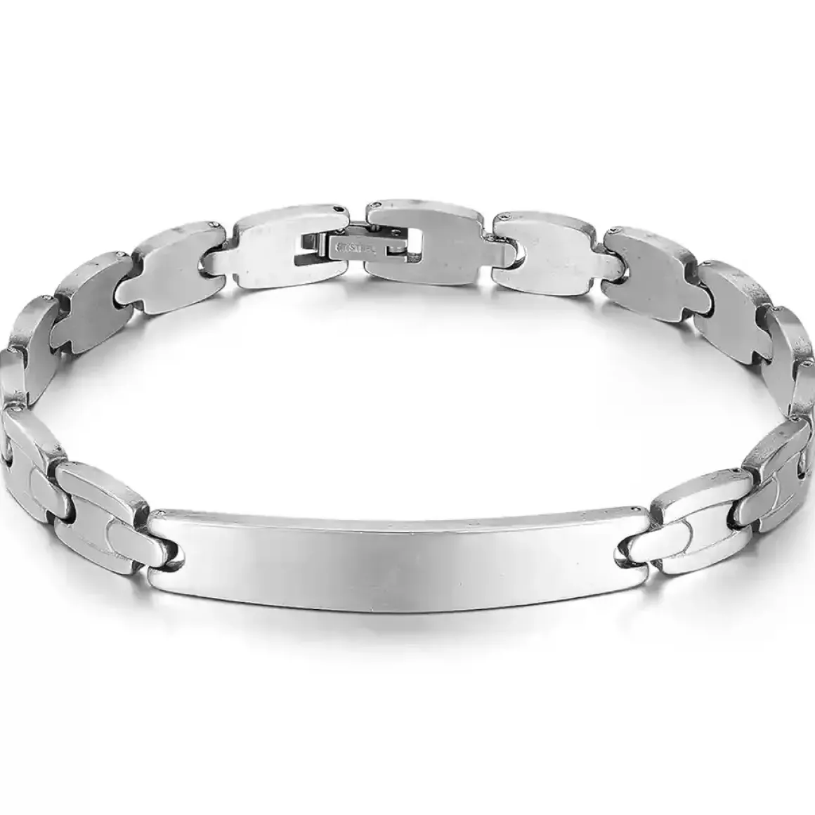 Dette 7mm brede armbånd er fremstillet i holdbart rustfrit stål og måler 20,5 cm i længden.