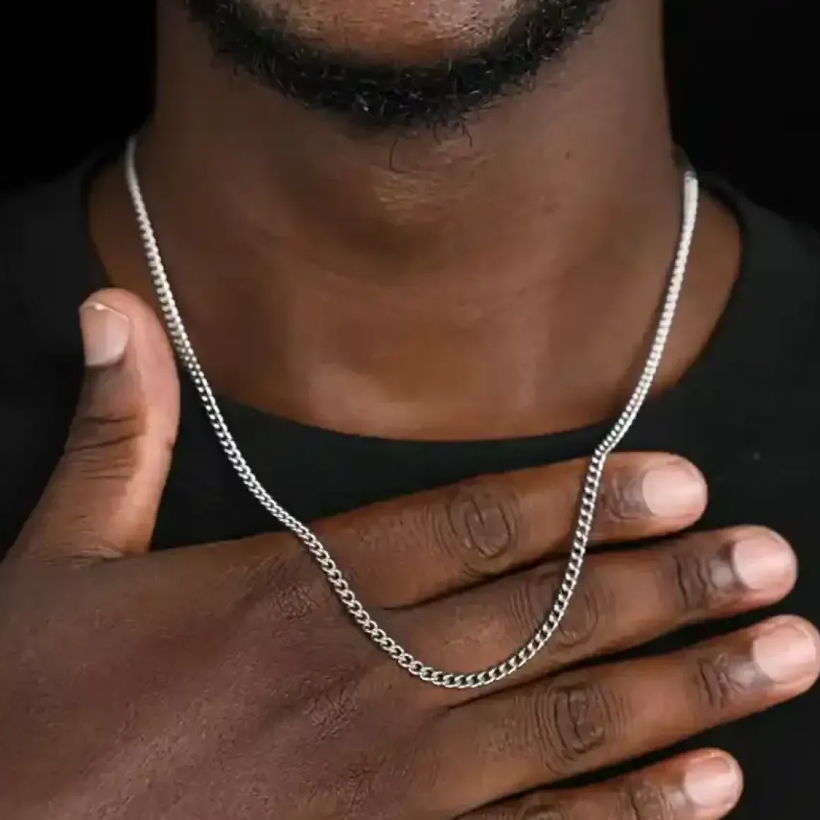 En tidløs og maskulin kæde i rustfrit stål, 3 mm bred, som passer perfekt til både hverdag og fest.