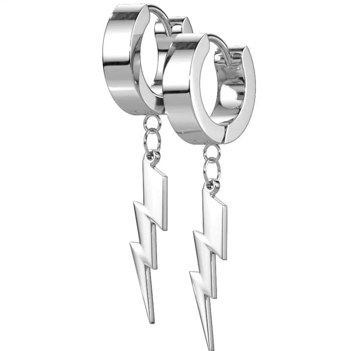 Højpolleret ædelstål ørering med vedhæng ala lyn.
