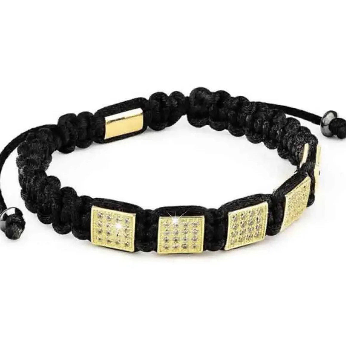 Flot macrame flette armbånd med ædelstål forgyldt med CZ sten.