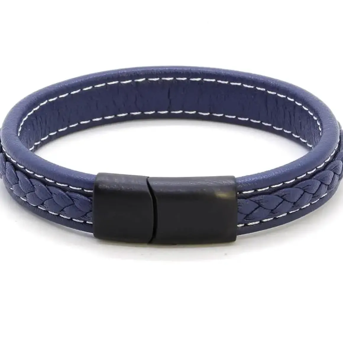 Blå læder er flot og går godt i spænd med den sorte magnet sikkerhedslås i Rustfri stål.