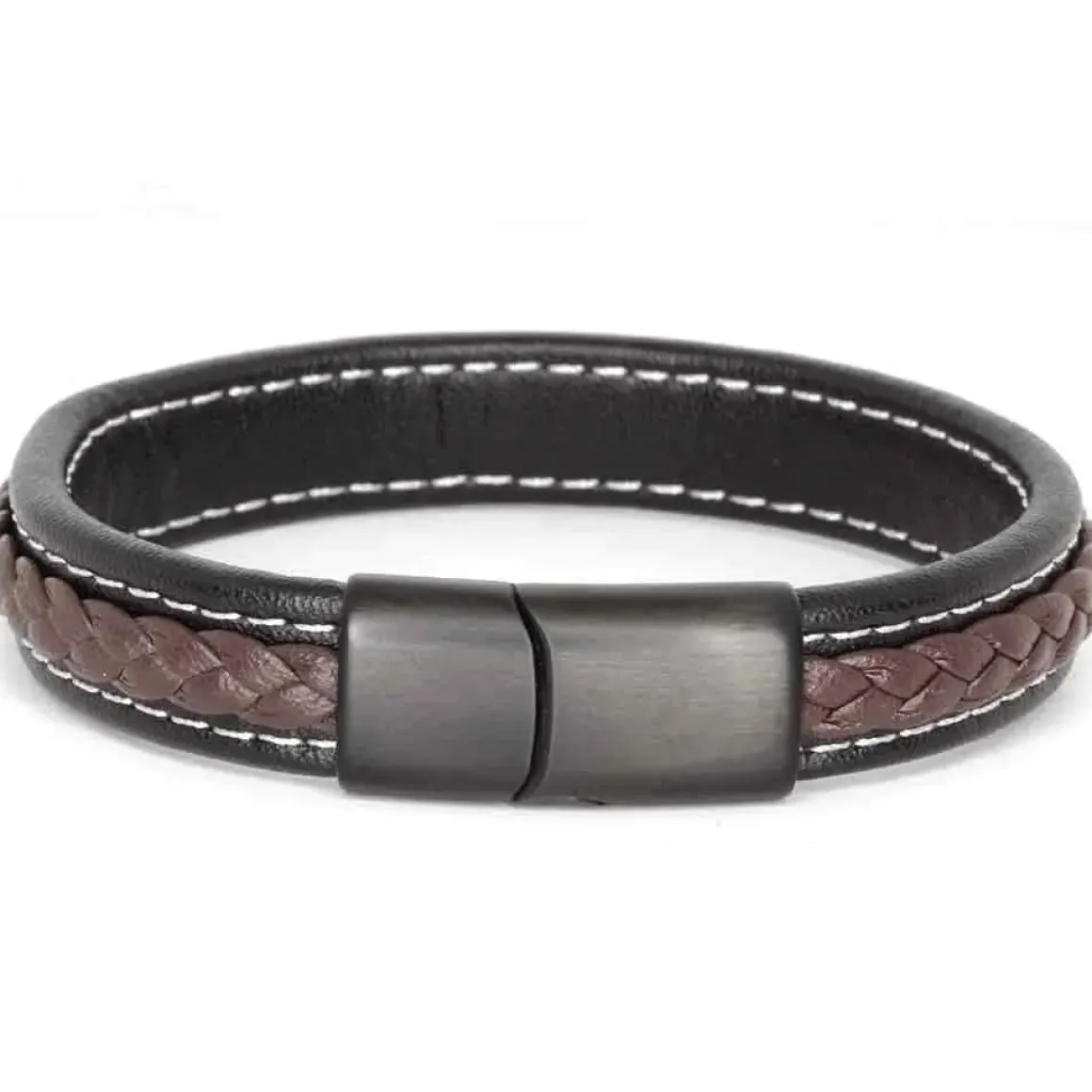 Major Brown / Læderarmbånd med blackcoatet mat stållås.