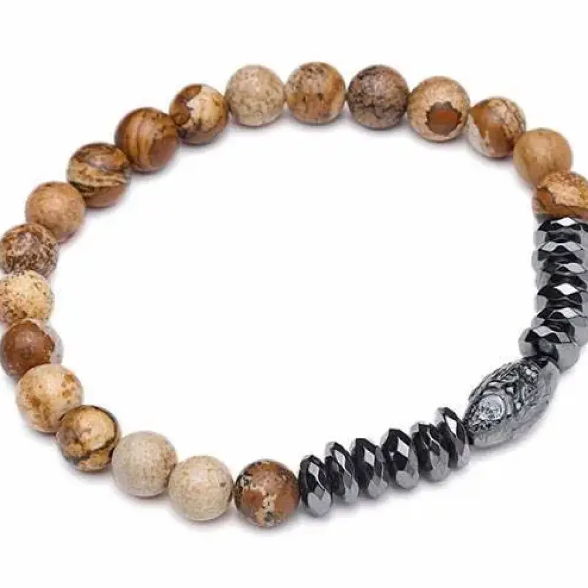 8 mm naturperler og hæmatit perler med flot shine.