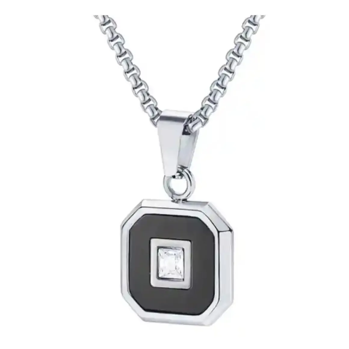 Dette maskuline smykke fremstår med en poleret sten indrammet i holdbart rustfrit stål.