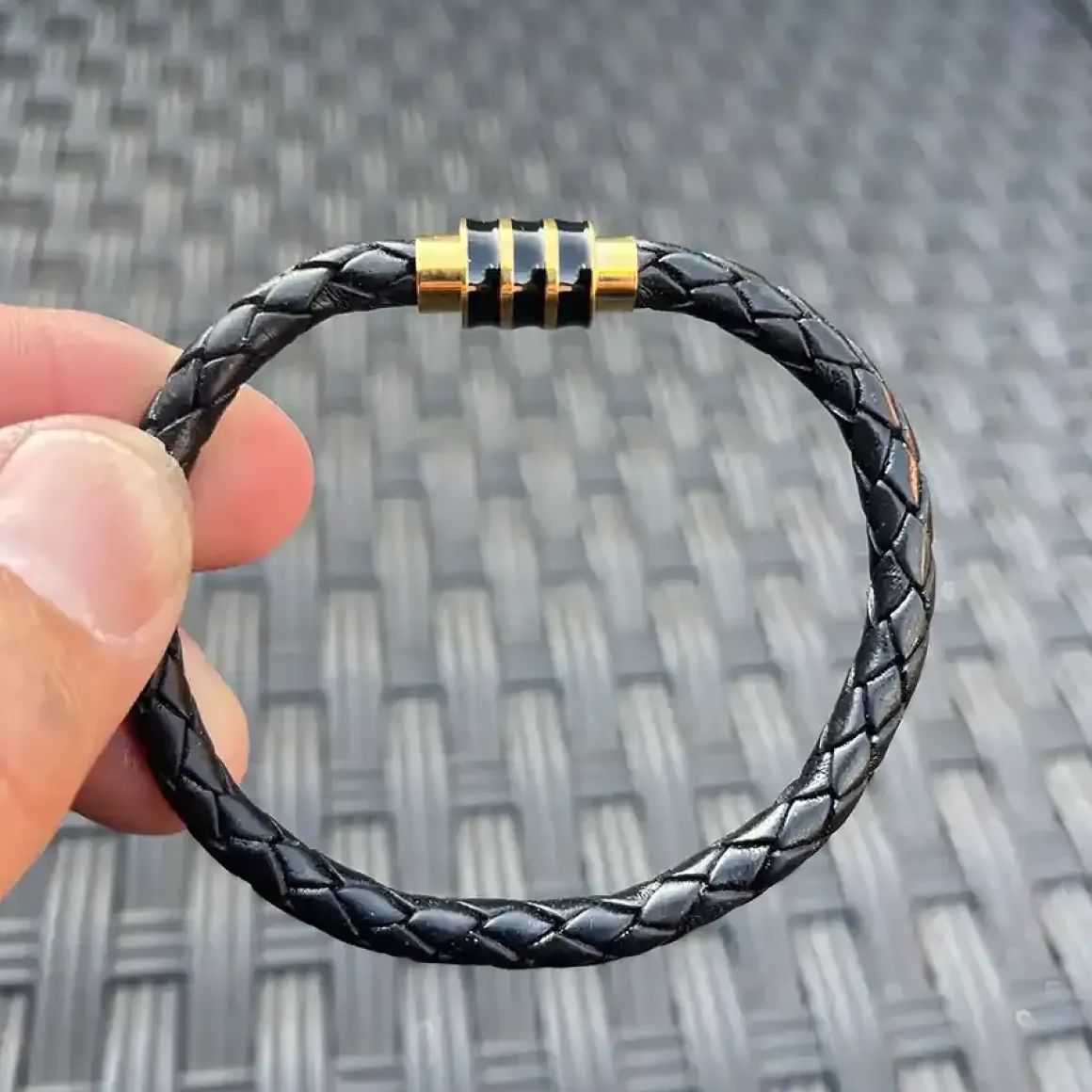 ette herrearmbånd er flettet af luksuriøst bololæder og fuldendes af en forgyldt magnetlås.