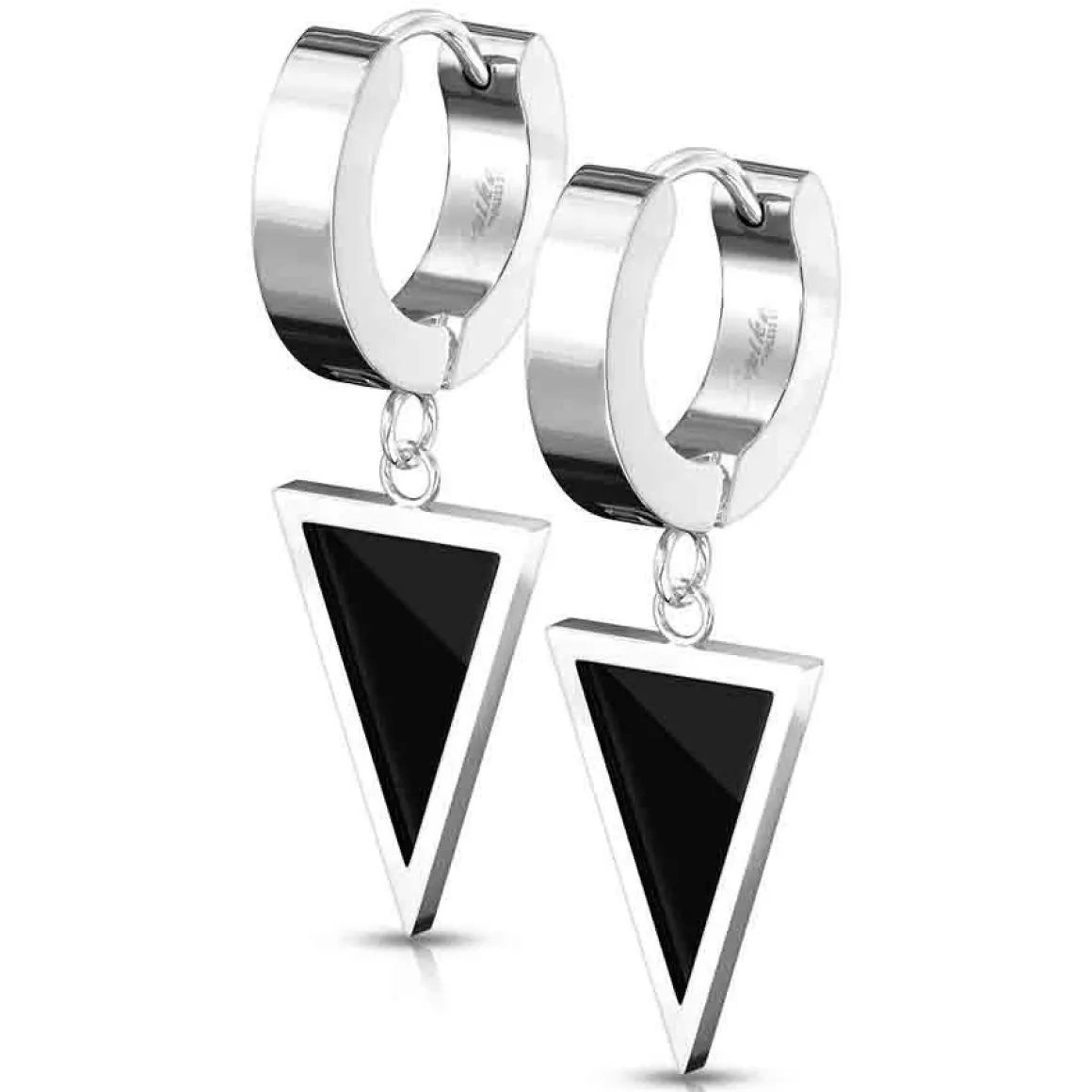 Flot ørering i ædelstål med blackcoatet vedhæng på 1,5 cm