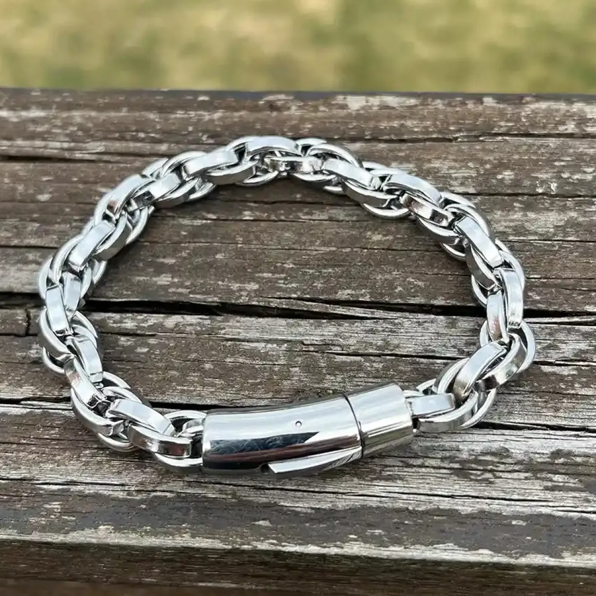Dette 21 cm lange armbånd kombinerer styrke og elegance, perfekt til den moderne mand med en forkærlighed for klassisk håndværk.