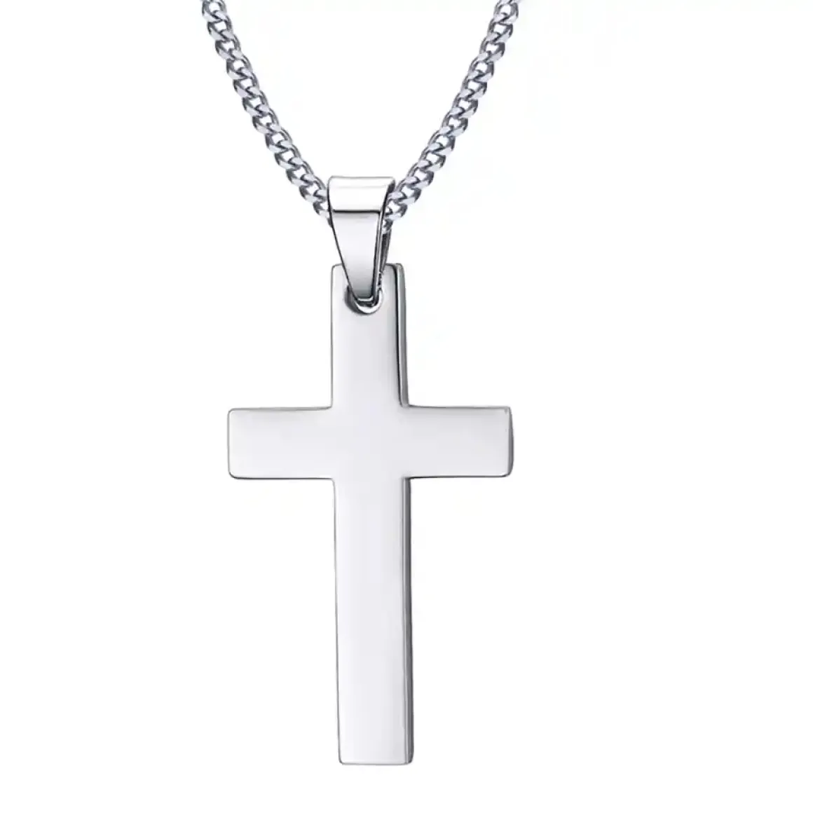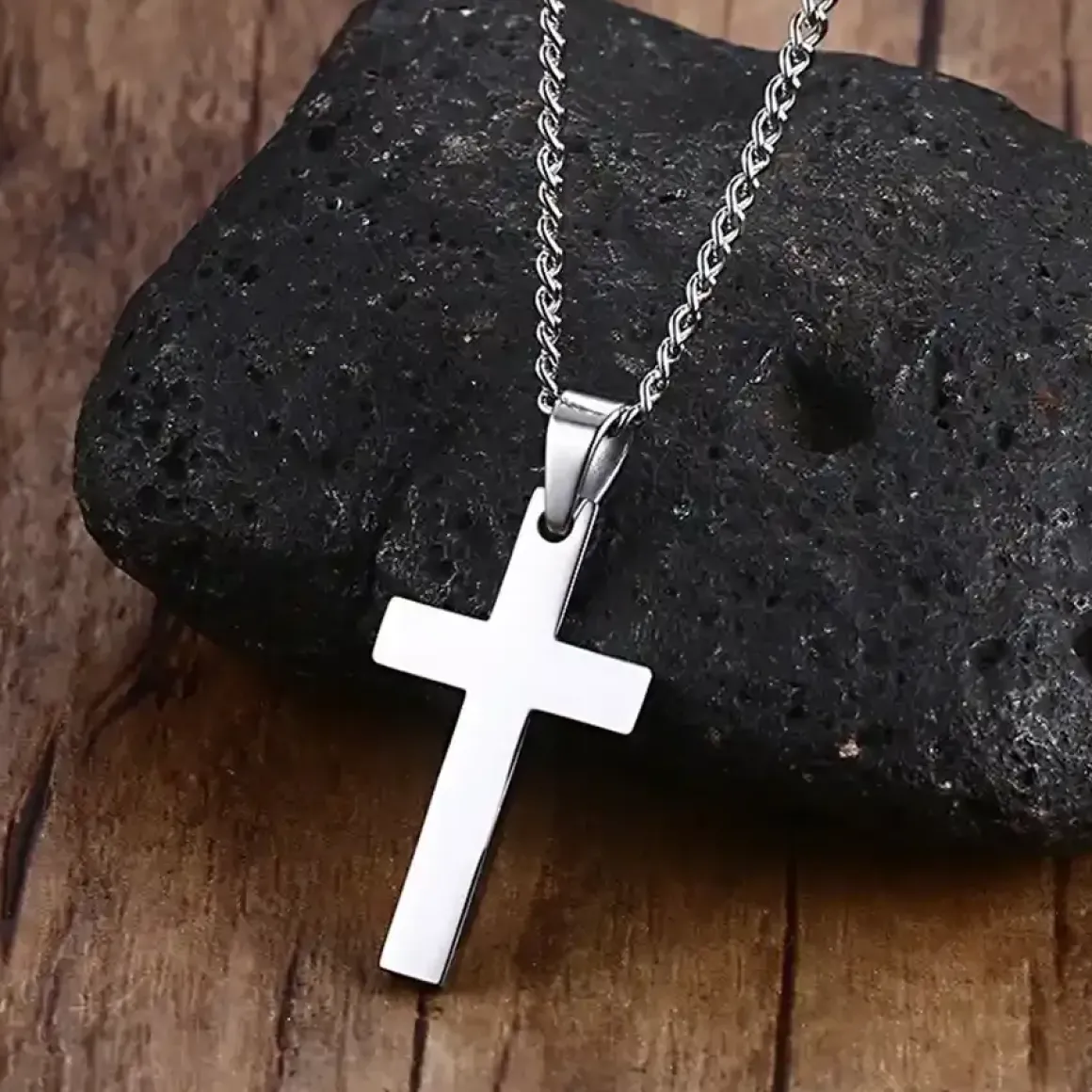 Korset måler 2 x 3,5 cm og er akkompagneret af en 60 cm lang kæde, perfekt til enhver mand der værdsætter elegance og kvalitet.