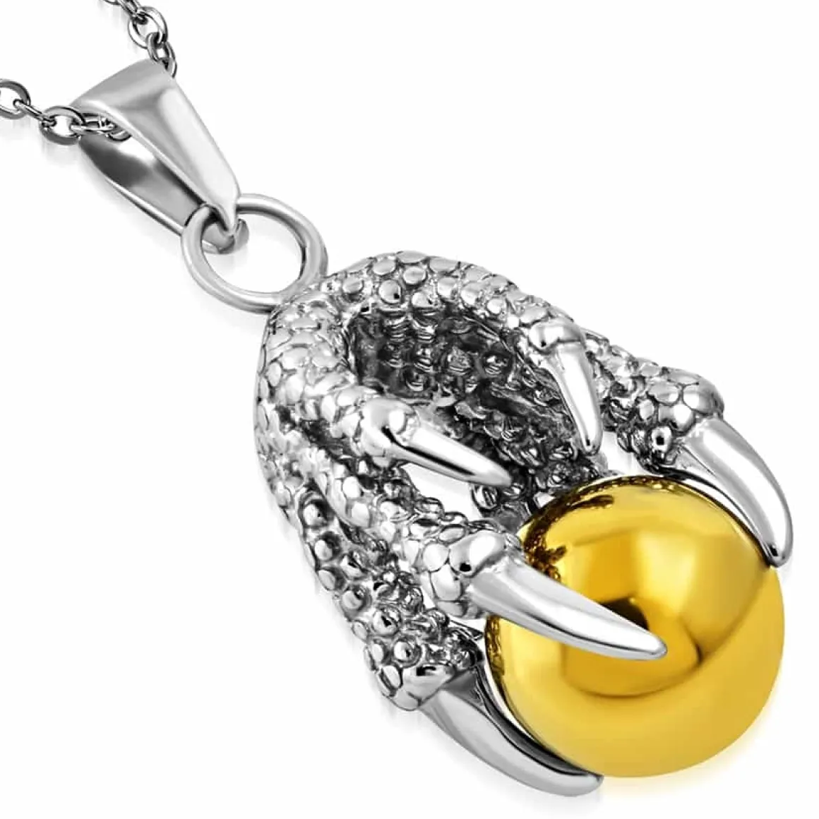 Ørneklo i blank stål og med løs forgyldt kugle.