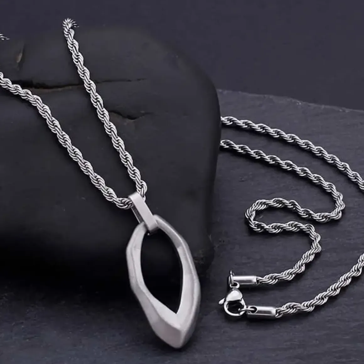 Vedhænget er i flot matteret stål og måler 2 x 3,5 cm
