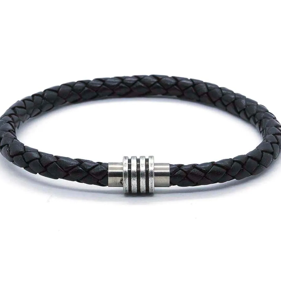6mm læder-flet i super kvalitet og med magnetlås i oxyderet matteret stål.
