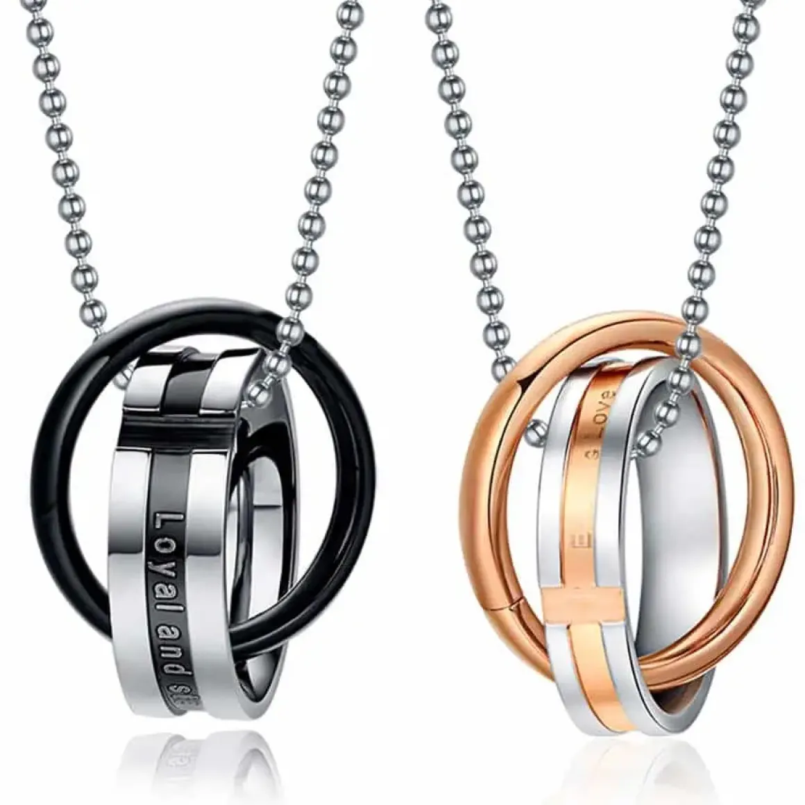 2 flotte matchende parsmykker i rudtfrit stål forgyldt og blackcoat.