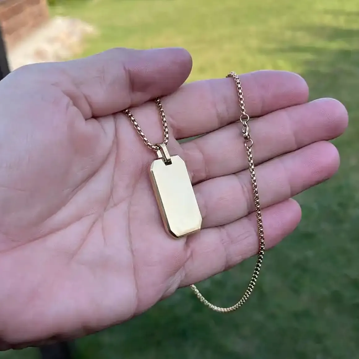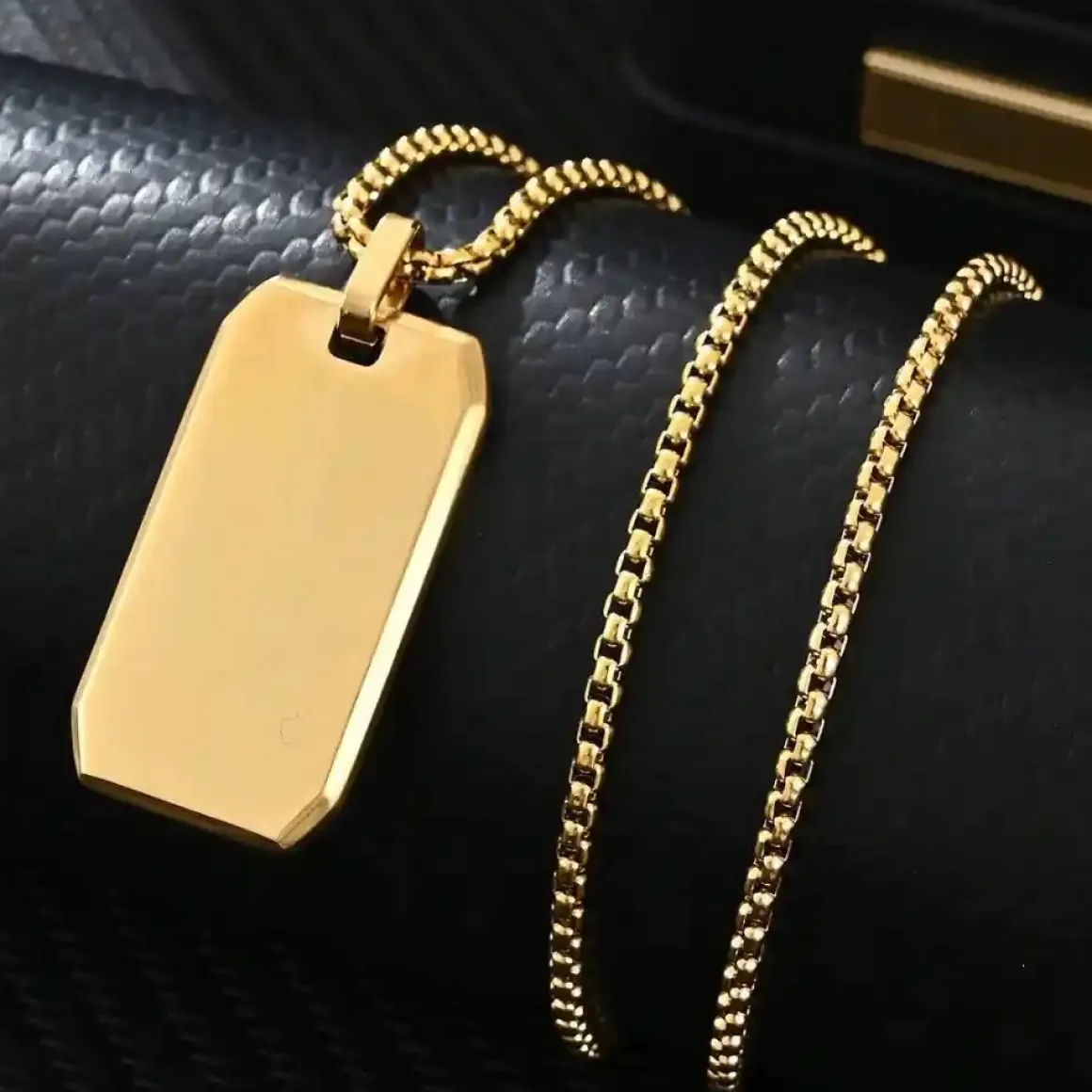 Her er den ultimative luksus med ‘Planc halskæden i forgyldt rustfri stål’.