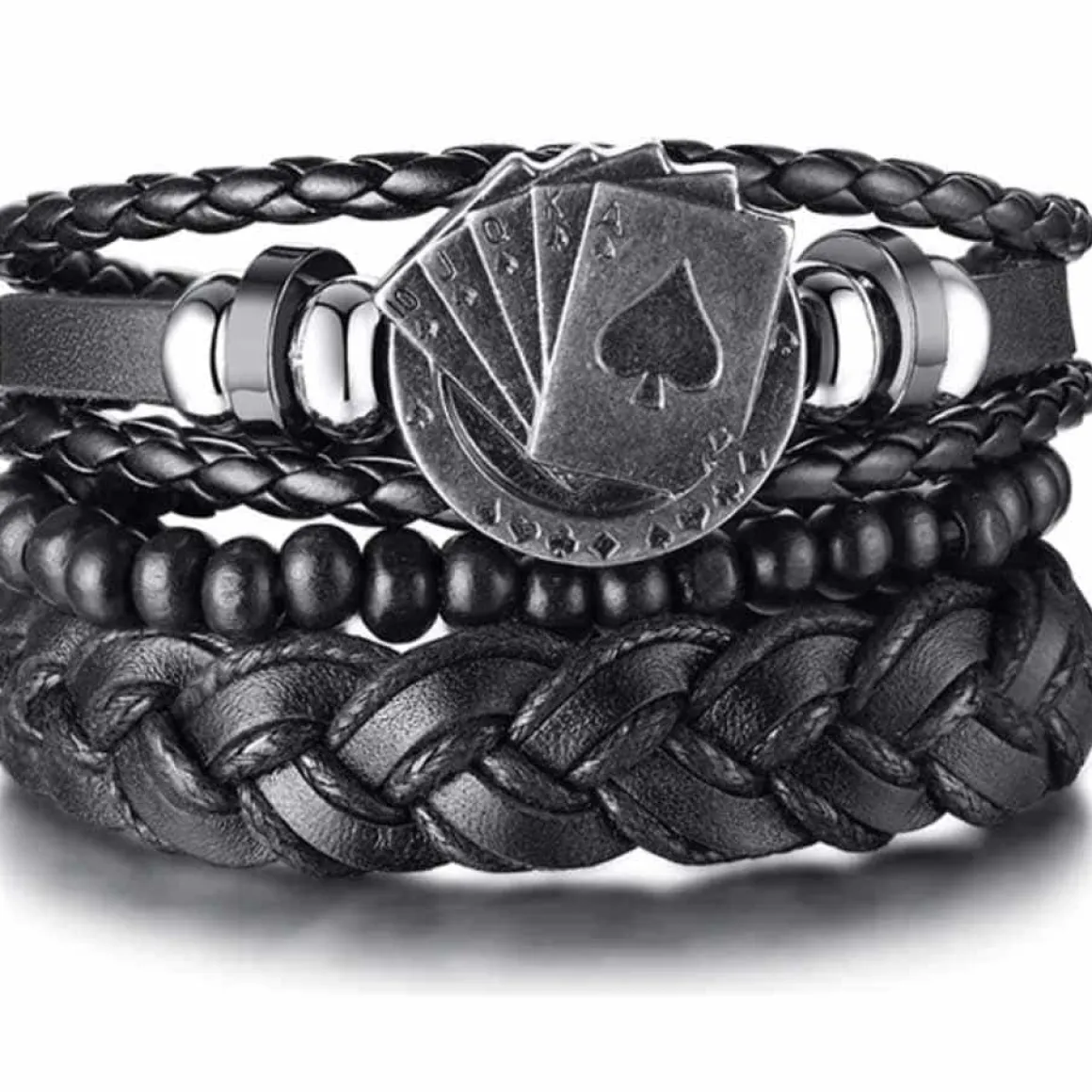 Poker black 3 armbånd i et sæt. Sorte læderarmbånd med poker tema.