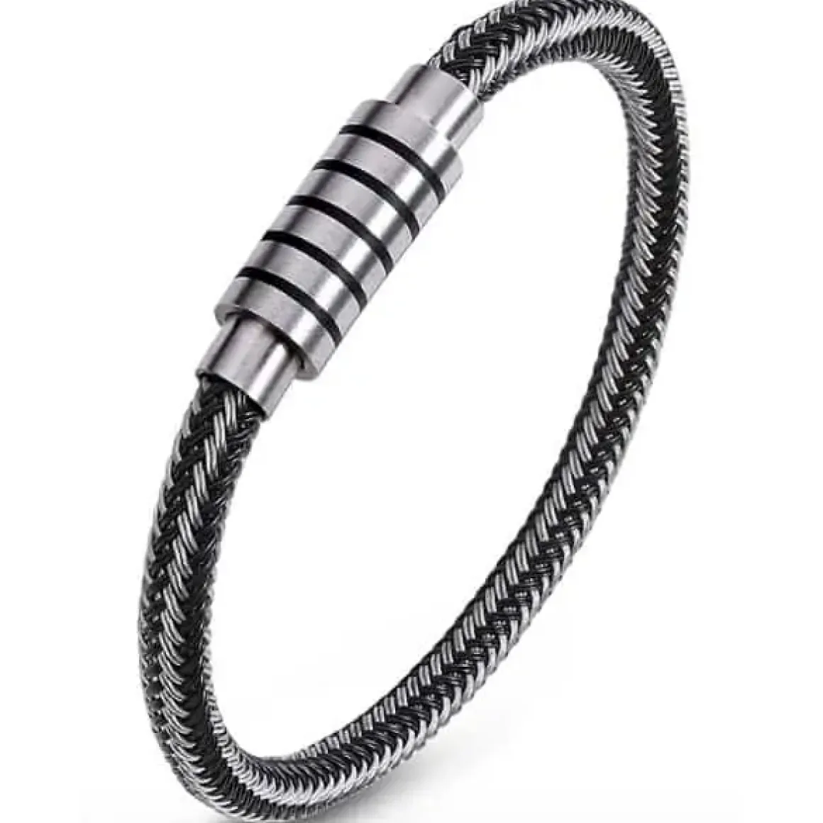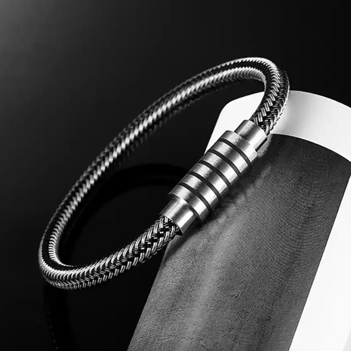 Pulse Steel kombinerer flettet stålwire med en elegant magnetlås, der gør armbåndet både funktionelt og nemt at tage af og på.