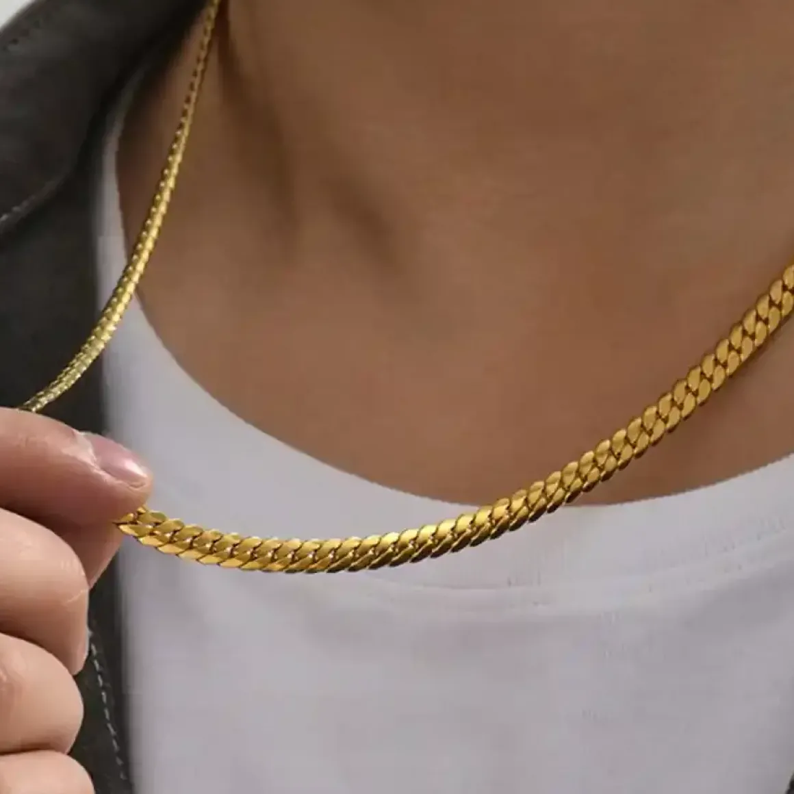 Forgyldt stållænke på 5mm bred og 60 cm i længden.
